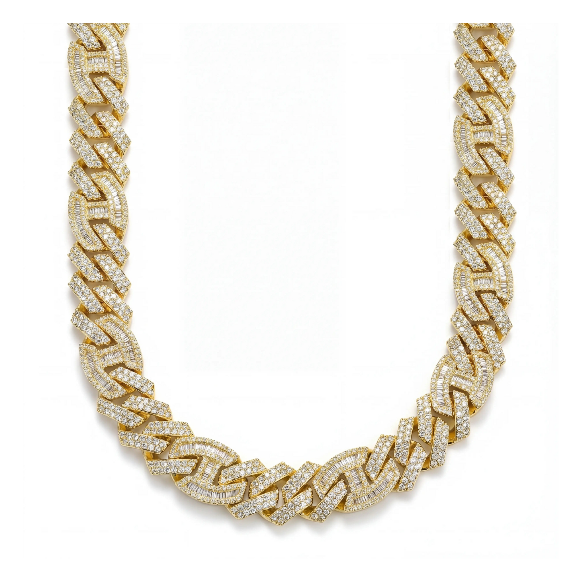 Upgrade your jewelry collection with the bold and luxurious 15MM Nocta Vince Cresta Misto Cuban Chain, designed for those who want maximum shine and premium craftsmanship. This chain blends the iconic Cuban link style with hand-placed baguette stones with round cut 5A CZ stones, giving it a unique, high-end look that stands out instantly.
